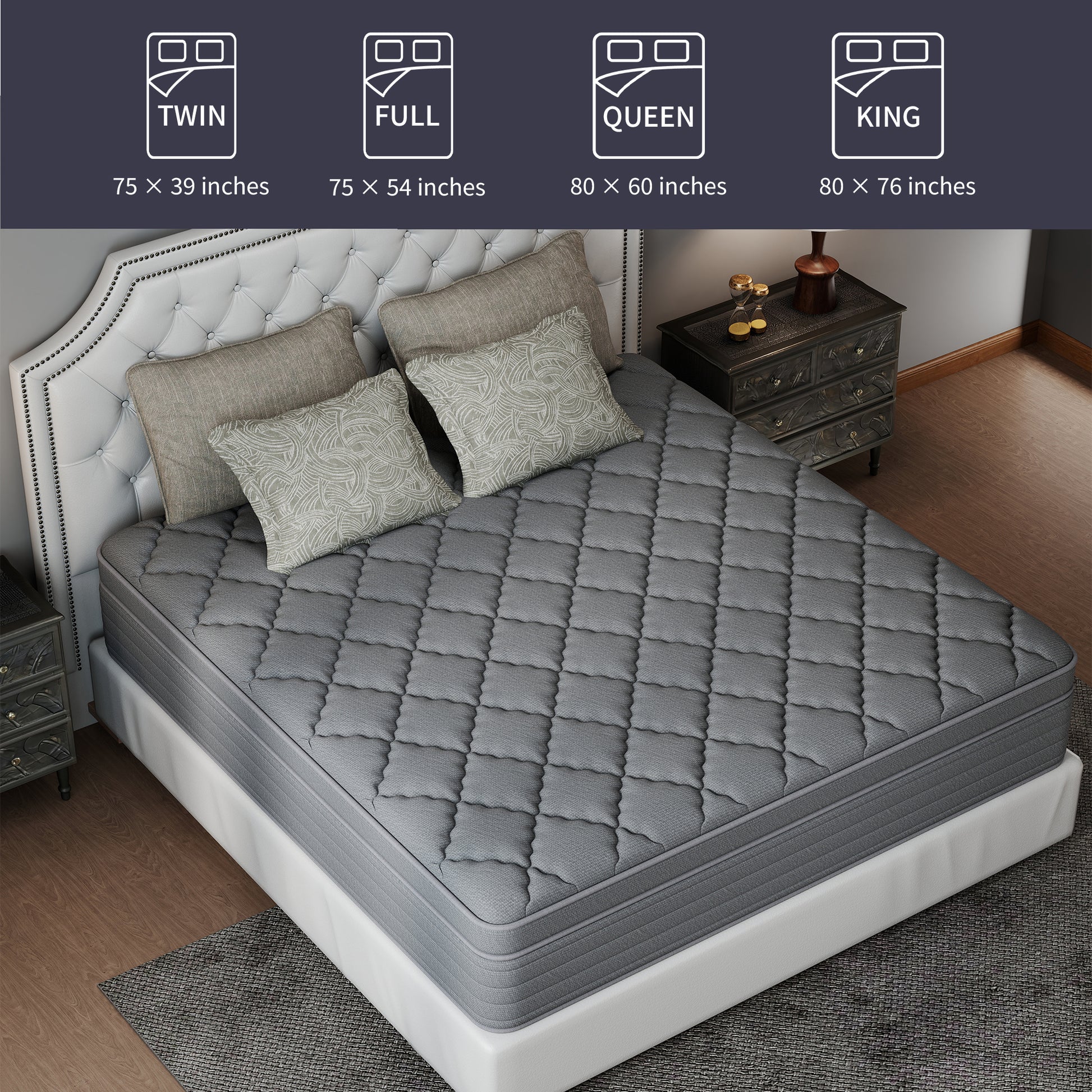 CHEVNI 12/14 Inch Gray Mattress Hybrid Spring Memory Foam Mattresses TWIN FULL QUEEN KING Size